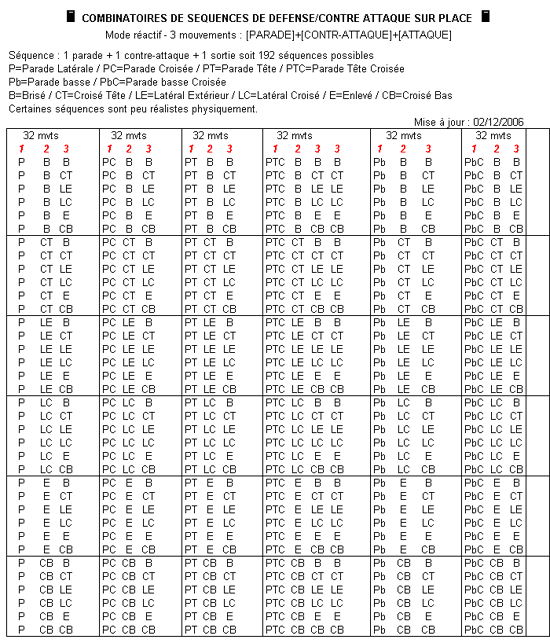 G COMBINATOIRE DES ETAGES DE COMBAT G